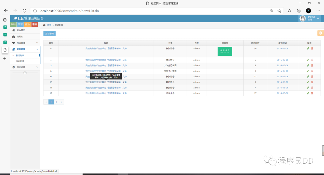 可以进行相关的新闻管理的操作,设置相关的新闻信息可以进行相关的设置