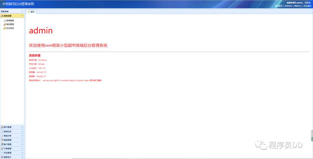 系统主页面如下所示为登录成功之后的系统页面