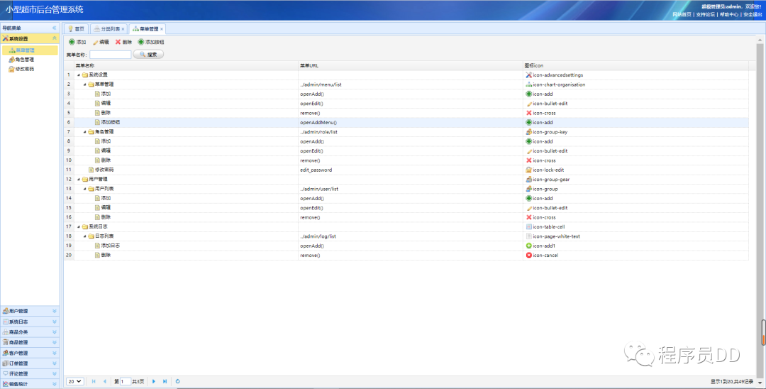 该分类管理主要是对系统内的分类操作进行相关的管理操作,主要是对分类的增加删除修改的操作