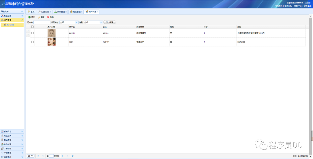 该界面内主要是对系统内的用户进行的管理包括对系统内的用户进行相关的操作