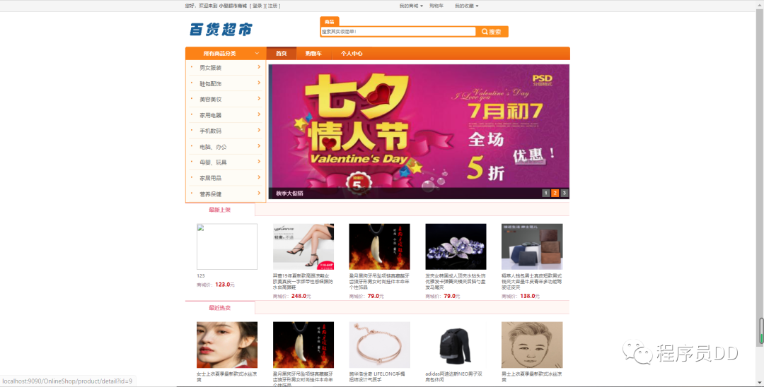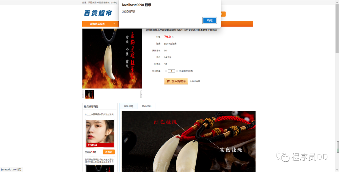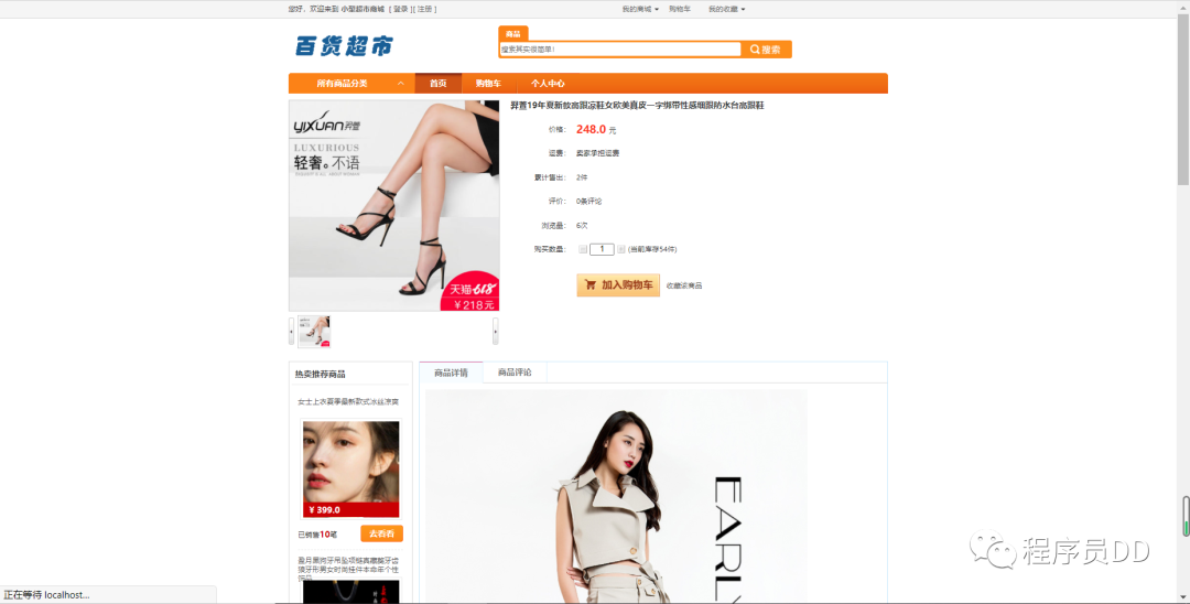 用户前台的登录和加入购物车操作如下所示,进行相关的登录之后就可以进行相关的购买操作,并且支持评论和收藏的操作,进行相关的操作界面