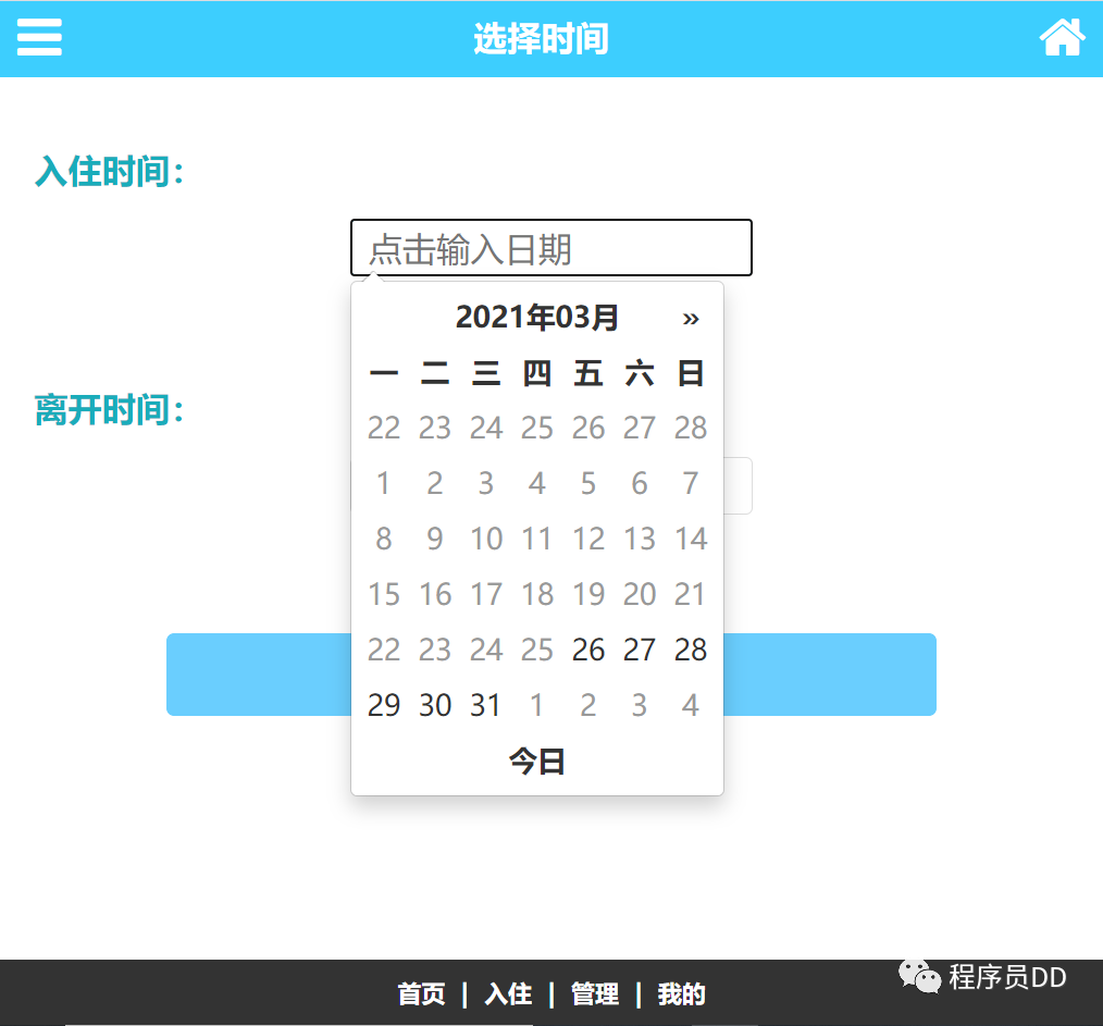 选择对应的时间,离开时间必须大于入住时间,这里面可以选择对应的楼宇,可以针对具体的楼宇选择对应的房间号