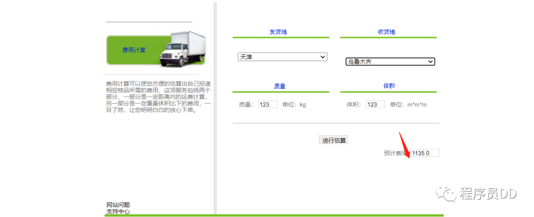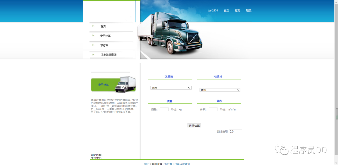 在用户端主界面可以进行物流的费用结算,根据物流的距离进行相关的费用计算