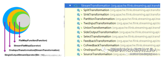 对于每一个算子,在加入到transformations列表的过程中,都会做一系列转化,将不同的算子转换为不同的transformation对象,并最终生成算子树。如刚才程序中的flatMap: