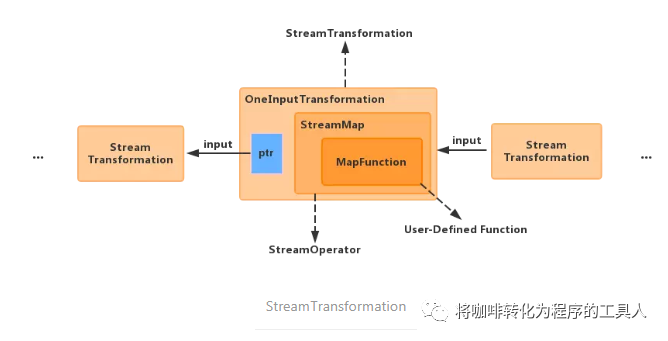private String slotSharingGroup; //表示slot的共享组private int parallelism; //该算子的并行度private final StreamTransformation<IN> input;private final OneInputStreamOperator<IN, OUT> operator;