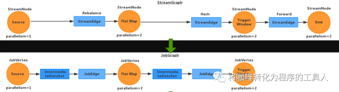 JobGraph是唯一被Flink的数据流引擎所识别的表述作业的数据结构,也正是这一共同的抽象体现了流处理和批处理在运行时的统一。