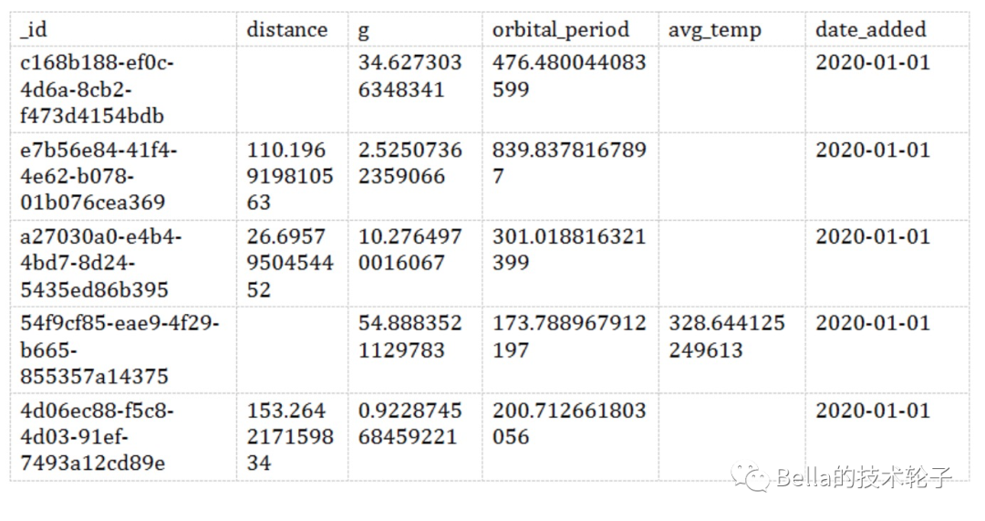 我们使用了一个天文数据集来进行演示。这个数据集用Python生成,生成的过程中,模拟了在生产环境中遇到的各种数据问题。
