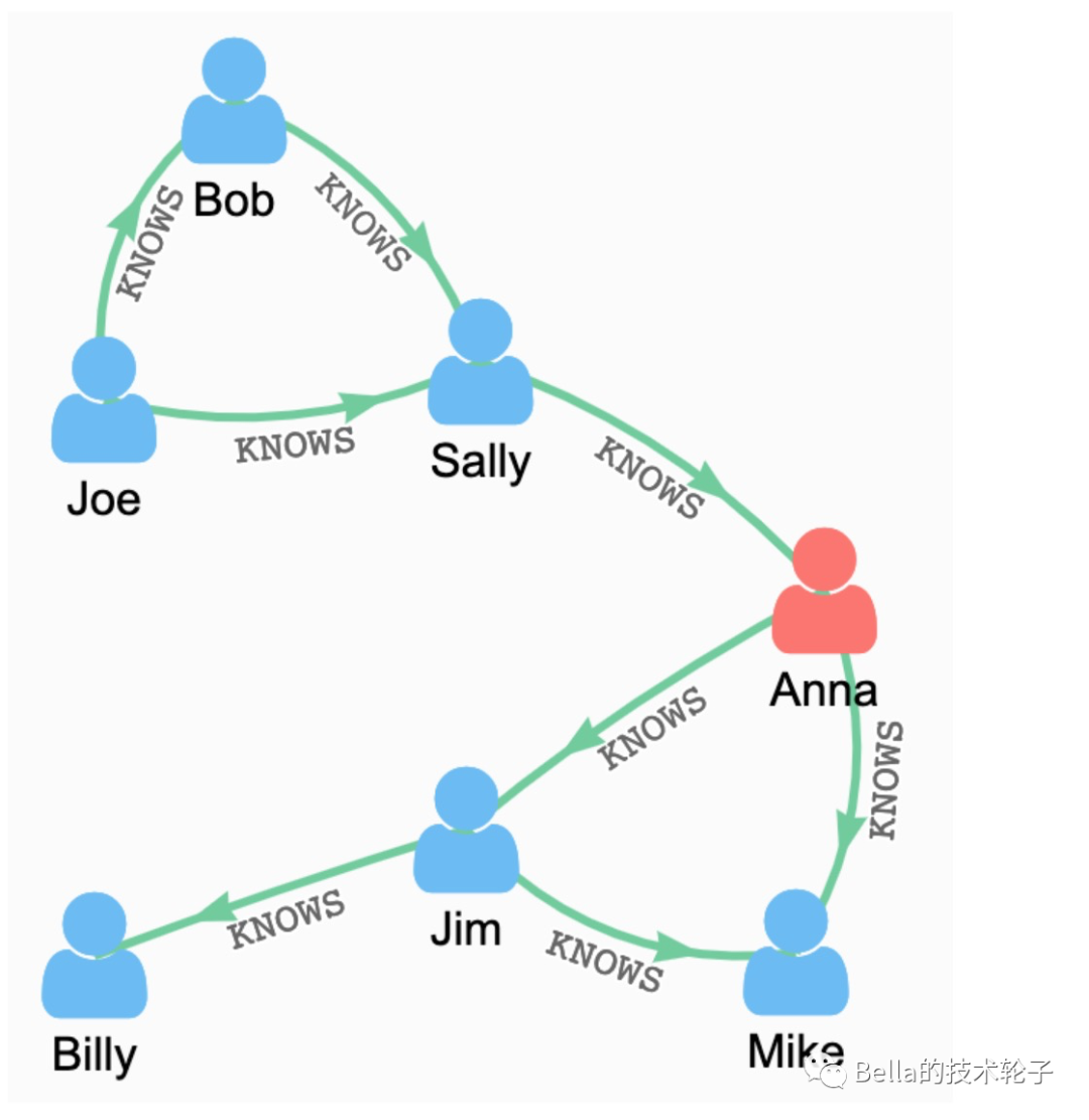 Joe认识Sally,Sally认识Anna。Bob被排除在结果之外,因为除了通过Sally成为二级朋友之外,他还是一级朋友。