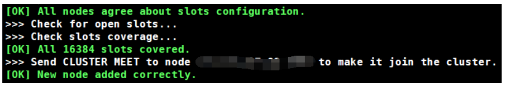 新增的节点没有哈希槽,不能分布数据,在原来的任意一个节点上执行: