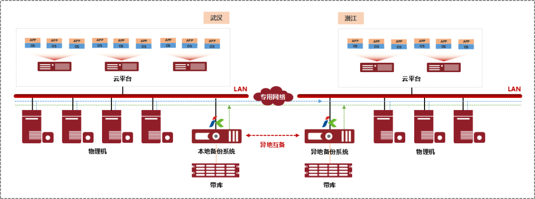 2. 长距离窄带宽支持。充分利用数据重删功能,在本地数据中心重删后的备份数据可直接传输到异地数据中心实现二次备份,配合断点续传等功能,在有限的带宽下保障了本地、数据中心正常互备。