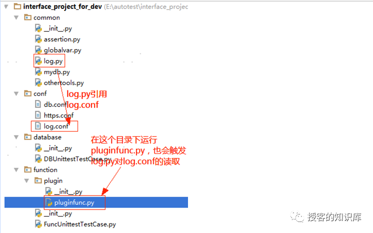 按上述方式编写代码,存在问题,当进入到plugin目录,并执行pluginfunc.py时,会提示找不到LOGGING session,也就是说找不到log.conf,解决方式,修改log.py如下: