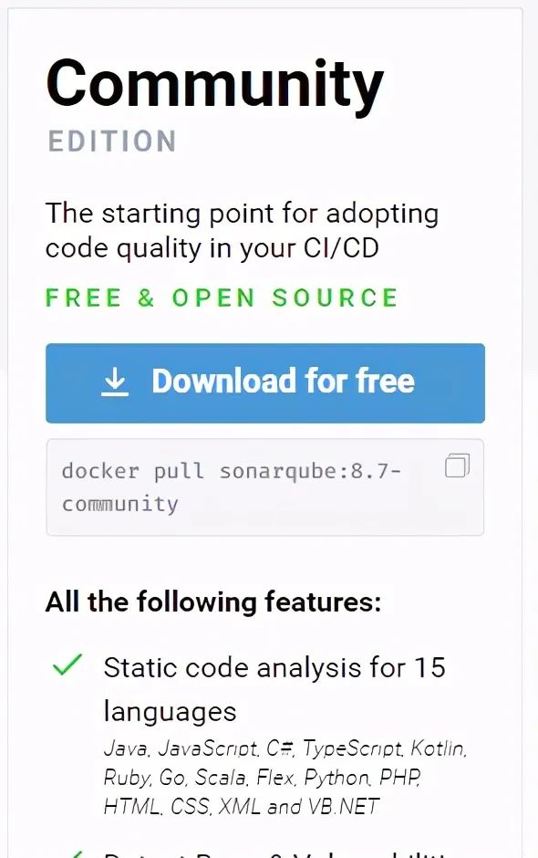 官网下载链接:https://www.sonarqube.org/downloads/,下载的版本为Community Edition Version 8.7;