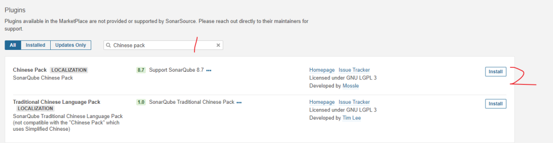 安装汉化插件,导航条中点击Administration菜单,搜索Chinese pack进行安装