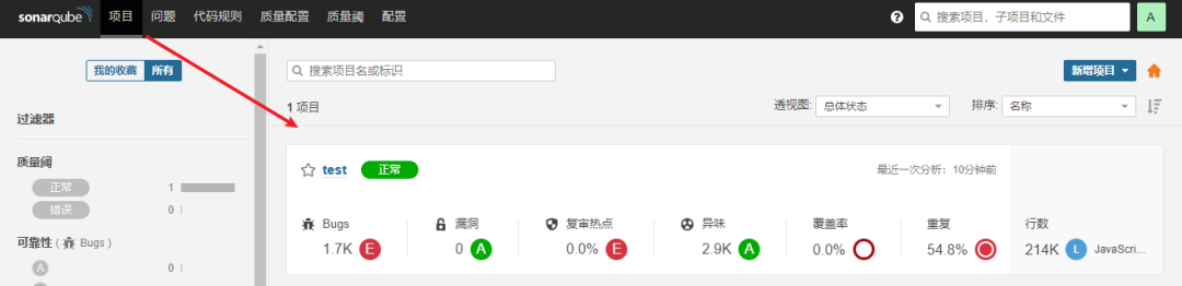 查看分析结果,刷新http://127.0.0.1:9000/,可以查看项目的扫描结果