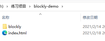 新建目录名为blockly-demo的文件夹,增加index.html,将已经下载的blockly代码也复制到该目录下,如下图: