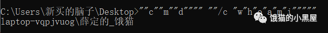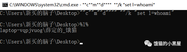 起初我以为是环境变量名后面只能跟数字和字母, 不能跟特殊字符, 但是测试之后发现都是可以的。于是接着排错, 为了方便看, 这里用引号: " 为例子做一个简单的混淆""c""m""d"""" ""/c "w"h"o"a"m"i"""""