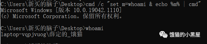 cmd " " /c "set m=whoami & echo %m% | cmd" # 可以执行