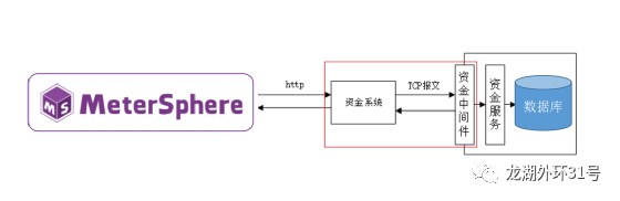 某资金系统通过对外统一接口实现相关资金系统功能(登录、签约、出入金等),屏蔽调用资金中间件细节。使用MeterSphere模拟用户在前端界面的操作发起http请求,后方资金服务收到请求后将会在数据库中体现结果。实际测试时系统架构如下图,一种典型的业务场景为:用户登录->查询资金->转入资金->查询资金->转出资金->查询资金。
