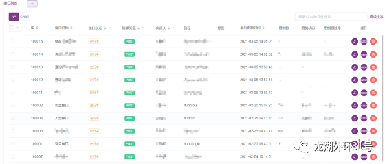 以登录接口为例,首先在API分栏点击接口右侧操作列的case按钮,弹出用例列表。