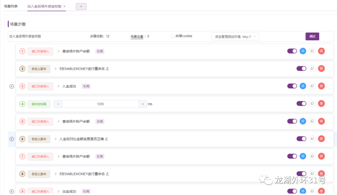至此,出入金类型的接口测试场景就编写并调试完成了,可以手工执行,也可以嵌入到持续集成流程中。