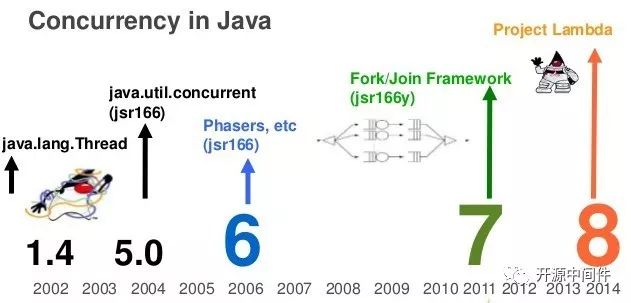 这个主题中,绝大多数内容在Java5就已经就绪了,只有少数的特性是在Java7以后加入的,其中完整的功能只有在Java7中加入的Fork/Join框架。