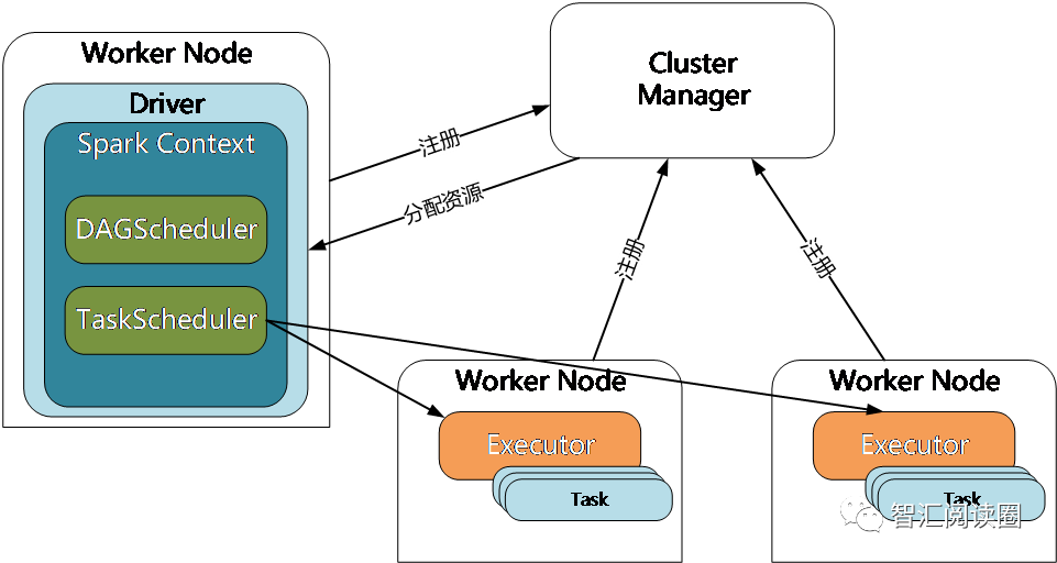 Spark Streaming 连续不断的生成微小的数据批次,构建有向无环图DAG,Spark Streaming 会依次创建 DStreamGraph、JobScheduler。