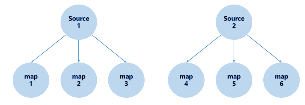 (1)One to One模式:两个operator用此模式传递的时候,会保持数据的分区数和数据的 排序;如上图中的Source1到Map1,它就保留的Source的分区特性,以及分区元素处 理的有序性。