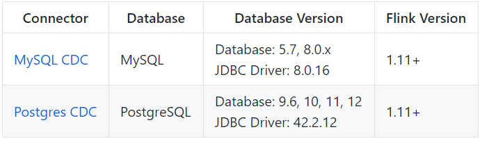 Flink CDC Connectors 和 Flink 之间的版本映射: