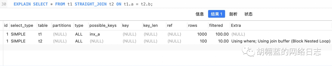 下图是上面 join 语句的 explain 结果:
