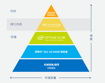 图1:存储金字塔,展示了全新英特尔® 傲腾™ 持久内存在存储层次结构中的位置