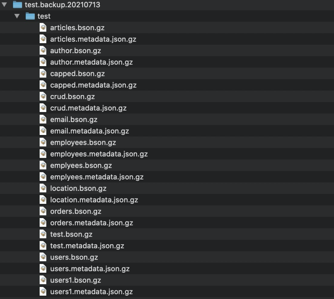 # 恢复 test 数据库mongorestore --gzip --nsInclude="test.*" test.backup.20210713/# 恢复 test.employees数据集mongorestore --gzip --nsInclude="test.employees" test.backup.20210713/