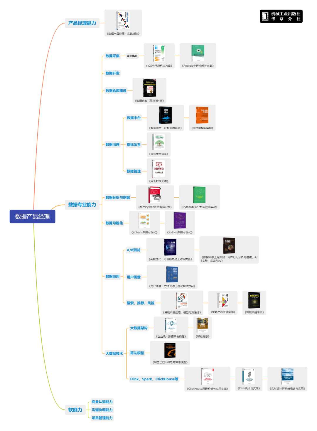 近些年来,产品经理的一个新的分支——数据产品经理正在兴起。很多企业开始意识到大数据对于企业管理和精细化运营的重要性,着手招聘大量数据相关的从业人员,开发各种数据产品。数据会对业务产生非常直接的影响,会影响业务负责人对业绩现状和团队努力的认知、对驱动因素的深层次思考,进而影响其对业务方向的长期判断。这里面,数据产品经理是极其重要的承载环节,他们直接决定了业务负责人和分析团队的同事对于数据的获取速度、获取准确度及获取方式。数据产品经理是企业数据化战略的重中之重。数据产品经理是个年轻的职业,是伴随大数据技术的成熟而诞生的。数据产品经理的职责是围绕数据构建解决方案,从获取数据的埋点到数据治理,从数据提取到数据可视化,从数字营销到广告,从搜索到千人千面的推荐,从风控到规划,从预测到AI。推荐语:一部全面讲解数据产品经理核心知识体系的著作。让读者全面了解数据产品经理的工作内容、系统掌握数据产品的核心知识体系,快速实现从入门到进阶的突破。一名数据产品经理,既需要作为“产品经理”的普适技能,也需要“数据”相关的专业知识,同时需要一些职场中通用的“软能力”。下面以数据产品经理需要具备的三种能力为主线展开,推荐一份必读书单,哪本书都能助你成为一名优秀的数据产品经理。