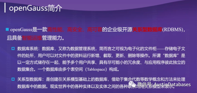 Today 听了一下墨天轮举办的OpenGaussDB的专题的训练营,下面是此次线上的OpenGaussDB的体系结构的介绍。这里根据介绍快速总结出此次介绍中OpenGaussDB的特点: