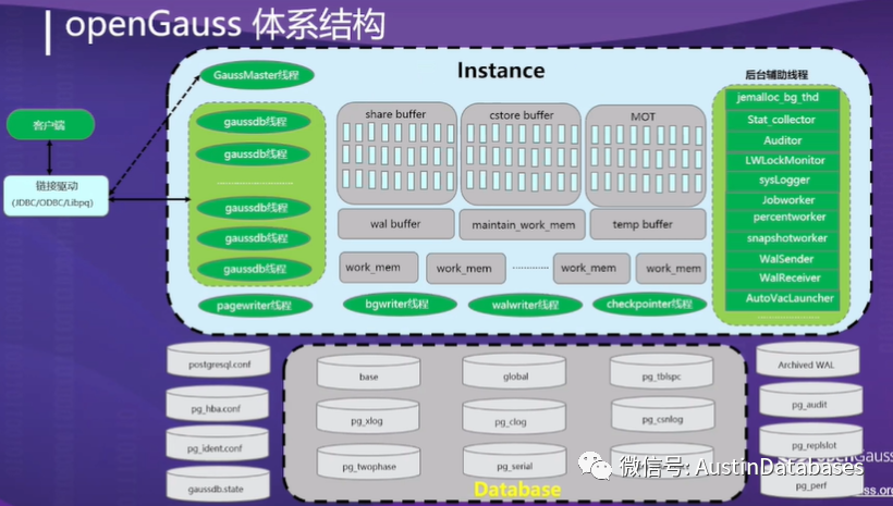3 OpenGaussDB 整体修改了基于PG方面的架构,如PG是客户连接是进程,而OpenGaussDB 采用了进程分配线程的客户连接的方式