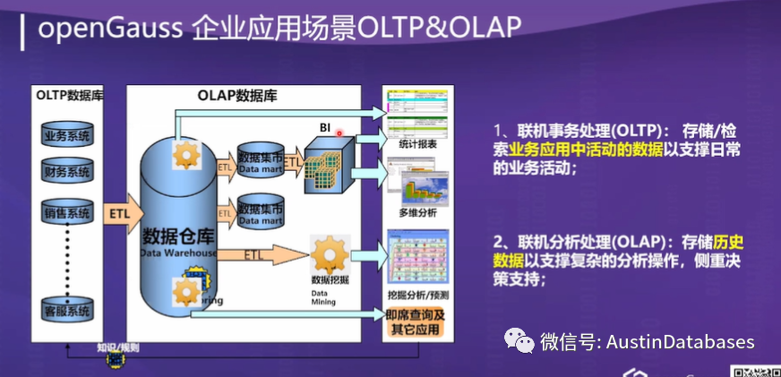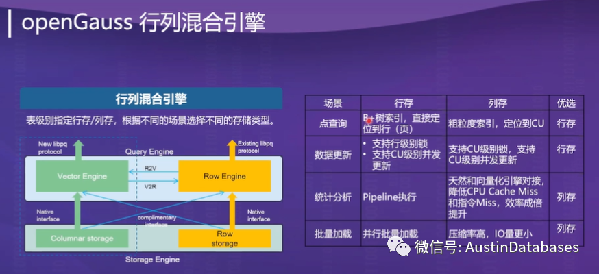 6 openGauss, 提供了HTAP的功能,在数据处理中提供双核心的数据库处理引擎,OLTP + OLAP 的方案,并且同时支持在数据查询中同时使用两个核心,根据数据的计算要求,对于大数据量的分析查询走列式数据库引擎 ,一个数据库包含 行 + 列的数据库引擎