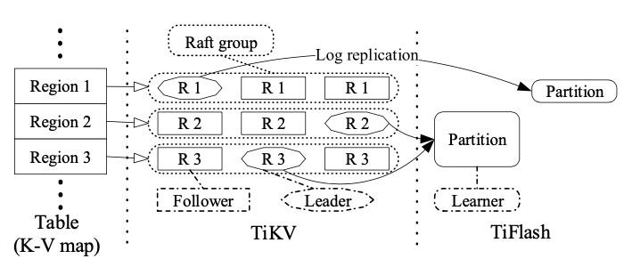 TiDB 为 Region 为单位使用多副本 + Multi-Raft 算法,而 CockroachDB 则采用 Range 为单位进行多副本,共识算法也是使用 Raft。
