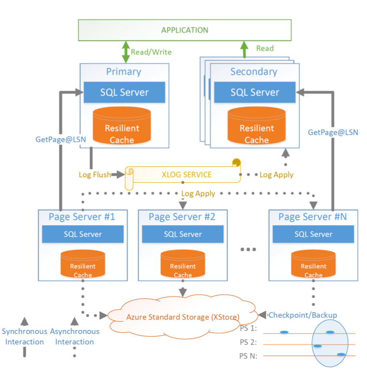 Socrates[7] 是微软新研发的 DaaS 架构。与 Aurora 类似,使用存储与计算分离架构,强调日志的作用。但是 Socrates 采用的复用已有 SQL Server 组件: