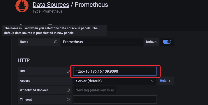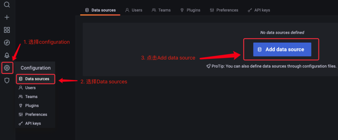 在浏览器上访问 grafana 的页面 http://${grafana_server_ip}:3000 ,使用默认用户 admin/admin登录 配置添加数据源