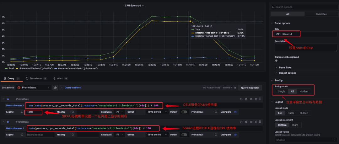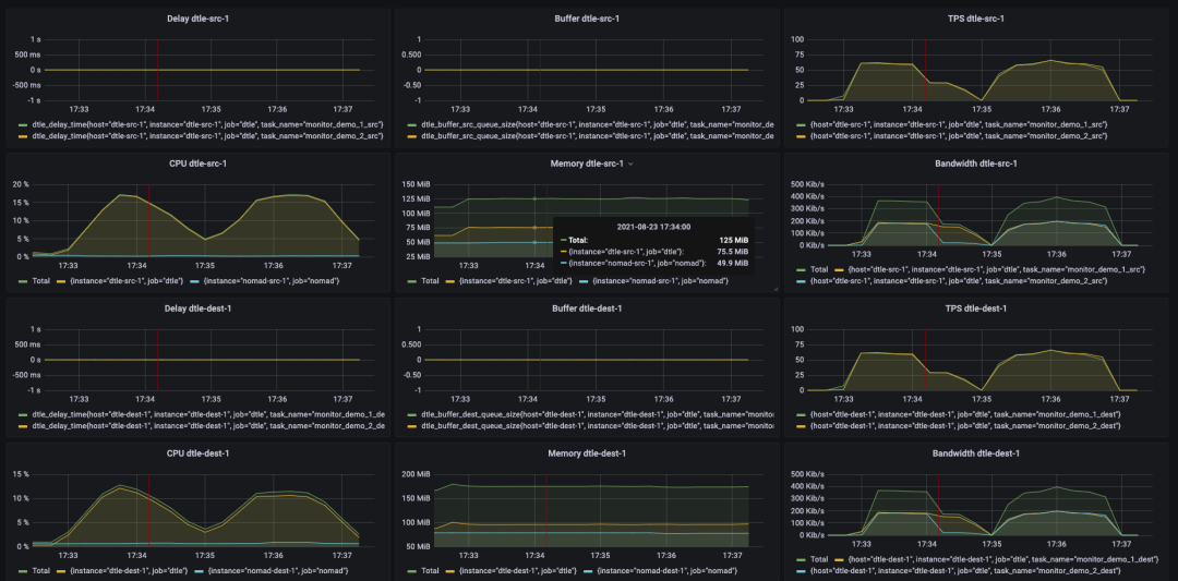 | CPU使用率(总计) | sum(rate(process_cpu_seconds_total{instance=~"nomad-src-1|dtle-src-1"}[60s])) * 100 | Misc Percent(0-100) |