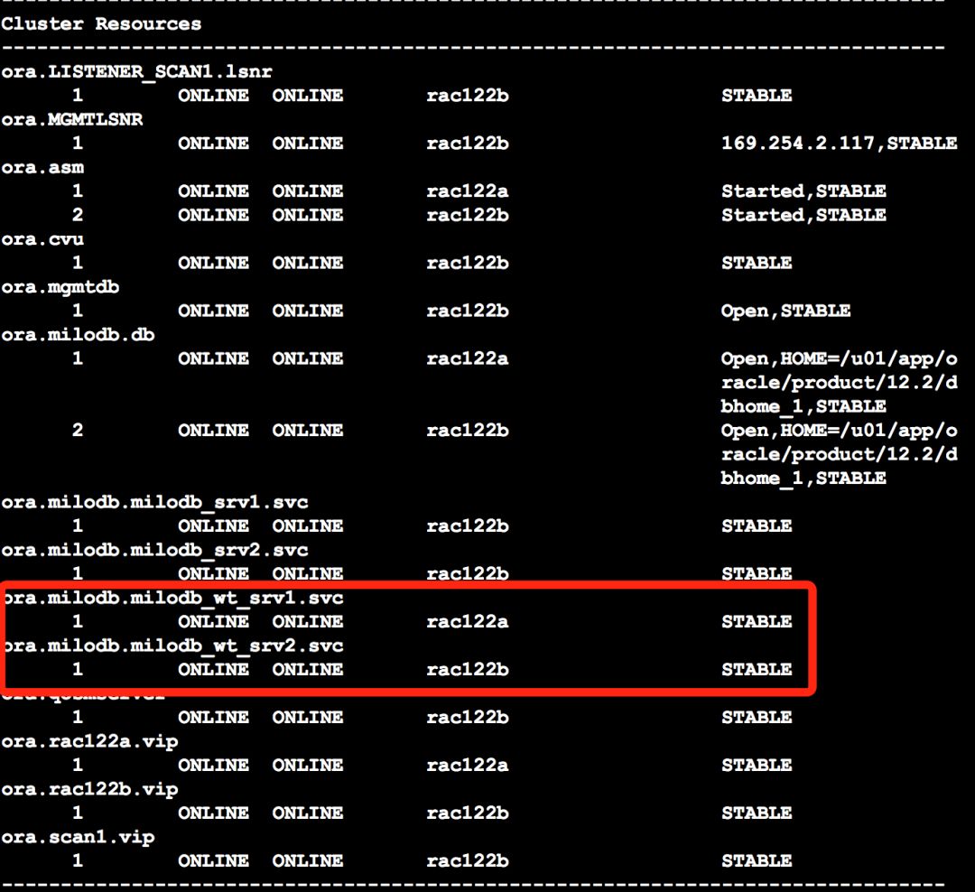 [oracle@rac122b ~]$ crsctl stat res ora.milodb.milodb_wt_srv2.svc -f | grep CSS