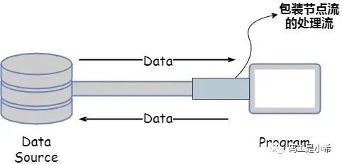 在《Java编程思想》中,流定义为代表任何有能力产出数据的数据源对象或者有能力接受数据的接收端对象;