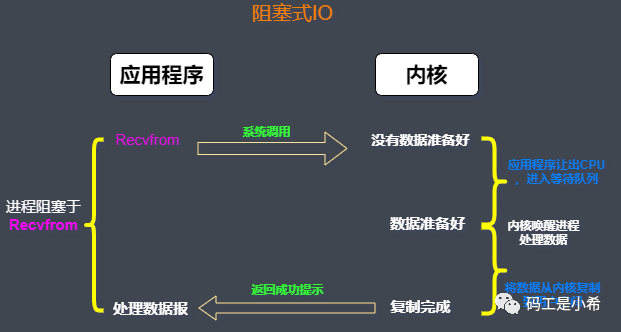 「阻塞IO」是:拷贝-知道所有数据拷贝到发送缓冲区。