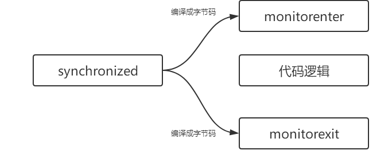 synchronized关键字被编译成字节码后会被翻译成monitorenter和monitorexit两条指令,分别在同步块逻辑代码的与结束位置。