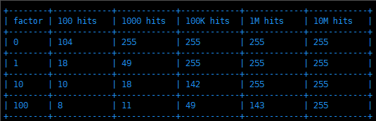 计算公式为:1/(baseval * lfu_log_factor + 1)