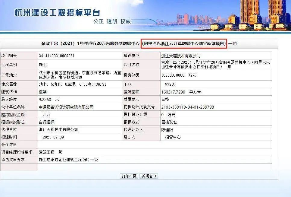 近日,临平区阿里巴巴浙江云计算数据中心临平新城项目发布一期工程招标公告,即将迎来正式开工。
