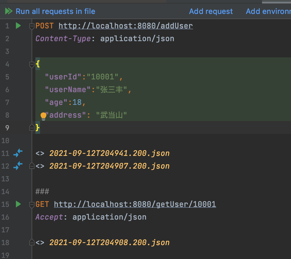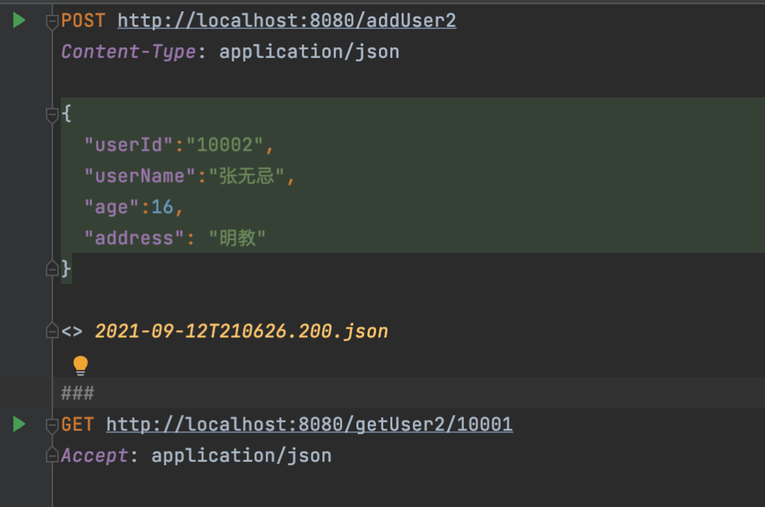 /*** @author 公-众-号:程序员阿牛*/@RestControllerpublic class UserInfo2Controller {@Autowiredprivate UserInfoRepository userInfoRepository;@RequestMapping("/getUser2/{userId}")public Optional<UserInfo> getUserInfo(@PathVariable("userId")String userId){return userInfoRepository.findById(userId);}@PostMapping("/addUser2")public UserInfo addUserInfo(@RequestBody UserInfo userInfo){return userInfoRepository.save(userInfo);}}