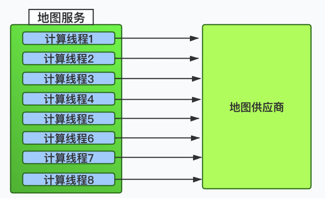 以上逻辑很清晰,即多线程并发去请求供应商,获得点对的距离计算的结果,然后组装返回给业务方,但是这种模式有以下几个问题: