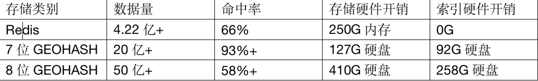 2,响应时间要在50ms以内,意味着只能是直接查mysql或者是redis,显然如果使用redis的话,至少要在一定时间内维护15亿+的GEOHASH点对,这个至少需要800G的redis内存,硬件成本是无法接受的,剩下唯一一个选择,即mysql,必须设计极简的库表结构来持久化GEOHASH点对,使得查询时间控制在30ms以内。