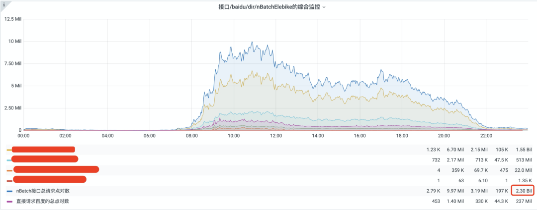1,派单业务调用的批量精准距离计算接口的日请求点对大概在6亿左右,其中redis缓存命中率达到了45%左右,接口整体有值率达到了96%左右。接口平均响应时间控制在了80ms左右,且对供应商的请求QPS控制在了1000左右。