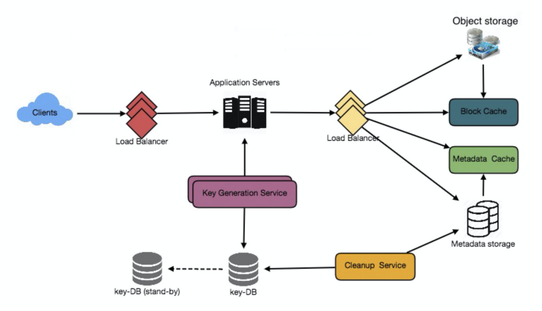 •元数据数据库:我们可以使用关系数据库如MySQL或分布式键值存储如Dynamo或Cassandra。•对象存储:可以像Amazon S3一样将内容存储在对象存储中。当我们想要在内容存储上达到最大容量时,我们可以通过添加更多服务器来轻松增加容量。